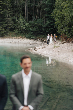 Avery und James haben sich dazu entschieden, Ja zu ihrem schönsten gemeinsamen Abenteuer zu sagen – an einem Ort, der perfekt zu den beiden passt: dem Eibsee in den bayerischen Alpen. Obwohl das Elopement im Juli stattfand, zeigte sich der Tag von seiner frischen Seite, gerade einmal 12 °C begleiteten das kleine, intime Fest. Doch Kälte konnte der Spontanität und Freude der beiden nichts anhaben.